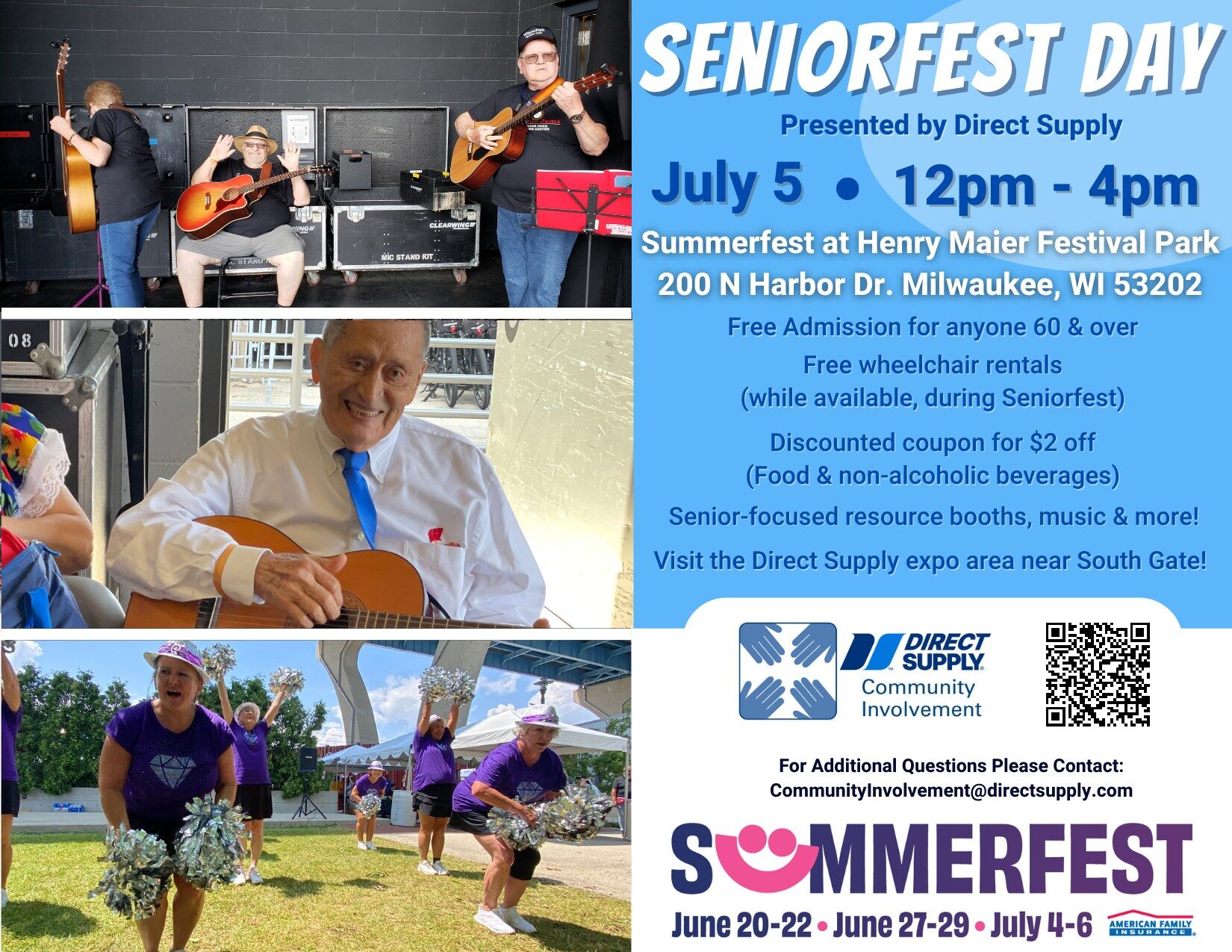 WMSE is proud to support Direct Supply’s 2024 Senior Fest Day at Summerfest on July 5th at the Direct Supply Expo area located just inside the South Gate. Enjoy a day filled with fun. From Noon 4pm, there is Free Admission for anyone 60 & over, Free wheelchair rentals (while supplies last, $2 off a food or non-alcoholic beverage purchase of at least $10, Senior-focused resource booths, music & more! For more information go to wordpress-1383815-5118593.cloudwaysapps.com/events