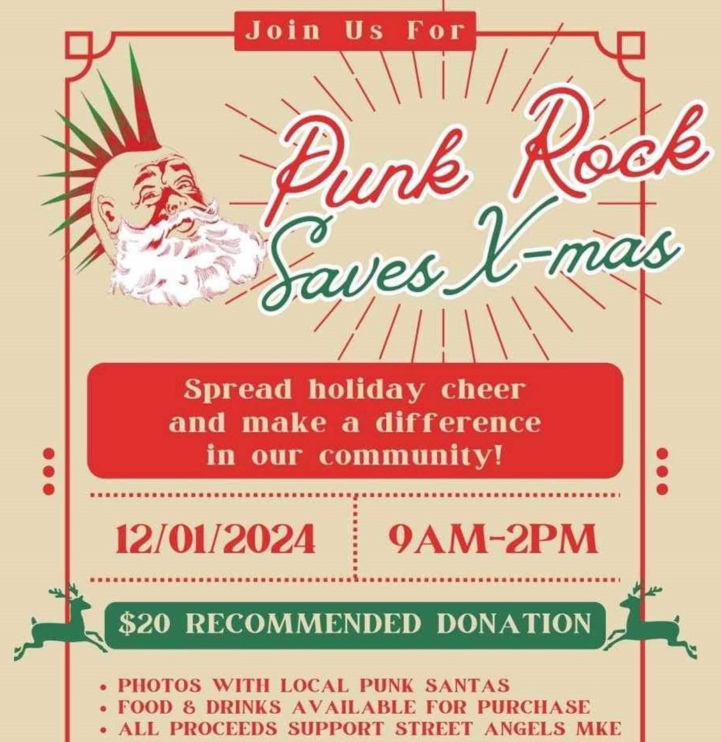 WMSE proudly supports Punk Rock Saves Lives. Want a truly unique and affordable holiday picture? Don’t go to the mall, come to X-Ray Arcade for your pictures with Santa! PRSL will be there Swabbing for the Bone Marrow Registry, the rad staff at X-Ray Arcade will be cooking all of your favorite brunch foods and slinging holiday cheer and, all proceeds will go to Street Angels MKE.