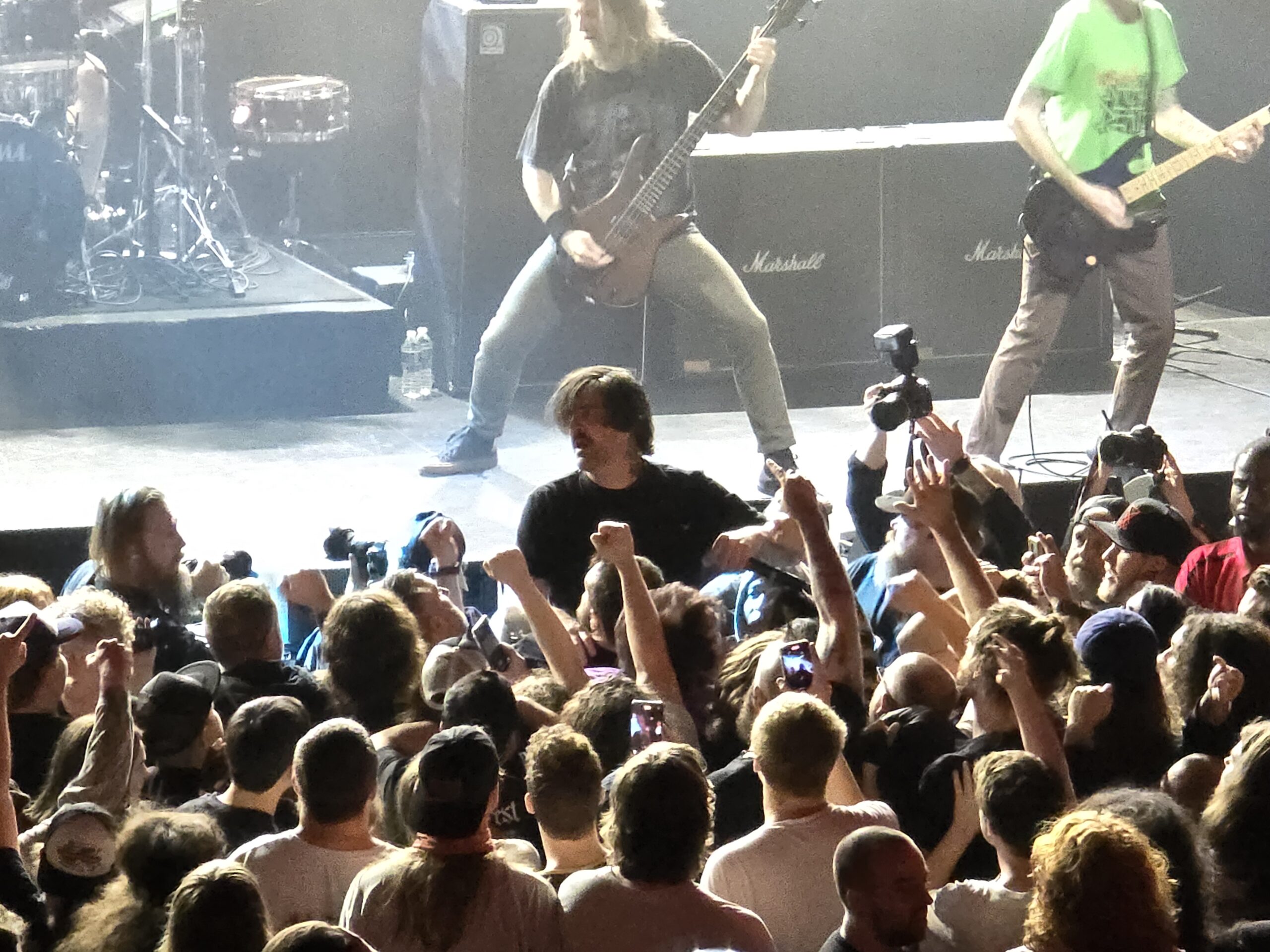 Yet, Devin Townsend mighta eked out the award for most-fun show of Day Two. Towards the end of his performance—right before “Truth,” fittingly—Heavy Devy said he’ll be taking an extended break after this tour, confirming his statement from last month. And he musta been thrilled about it, because his show was a dance party of pure joy and euphoria, complete with a wonderfully colorful light show. His adorable, aw-shucks giddiness—“I love you guys, and life is f****ing beautiful,” he proclaimed mid-way through—was delightful and intoxicating in equal measure. After the set, he stayed on-stage waving, shaking hands, throwing out guitar picks, and even gave one lucky attendee the setlist. But the high-energy material of his solo career was overshadowed by the room’s electricity when he busted out two (!!) songs from his beloved former band, Strapping Young Lad: “Love?” and “Aftermath.” If he’s truly done touring, at least for the foreseeable future, this was a helluva way to say goodbye.