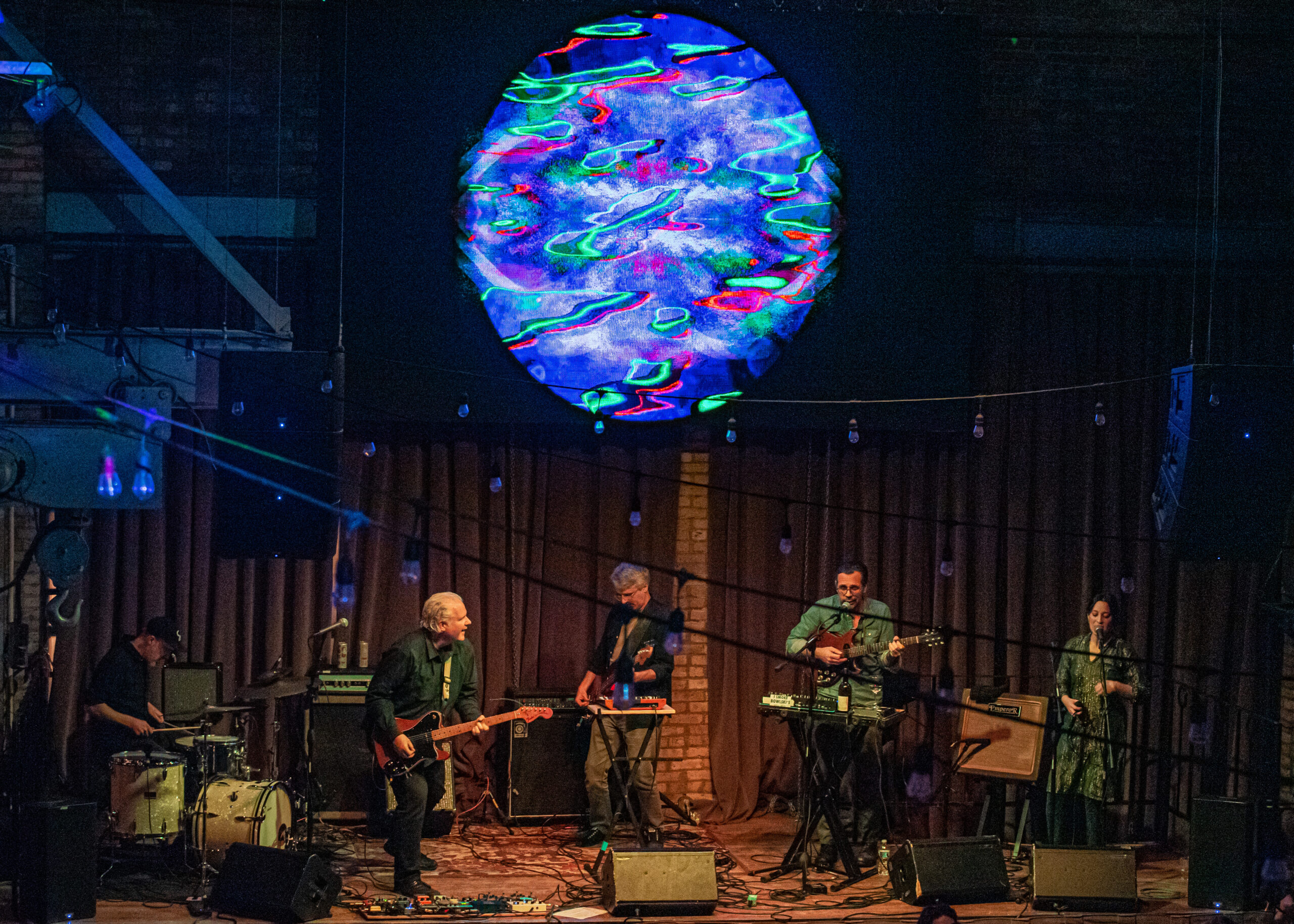 These three artists all performed amidst projectors and screens that were broadcasting some great psychedelic visuals throughout the three bands’s sets. The focus on all of the videos and visuals at the show made the gig feel almost like a miniature version of Psych Fest, which has become a popular perennial event in Milwaukee held annually at the Cooperage as well. I guess those brick walls might have the perfect artistic texture for spiraling geometric shapes and the whatnot.